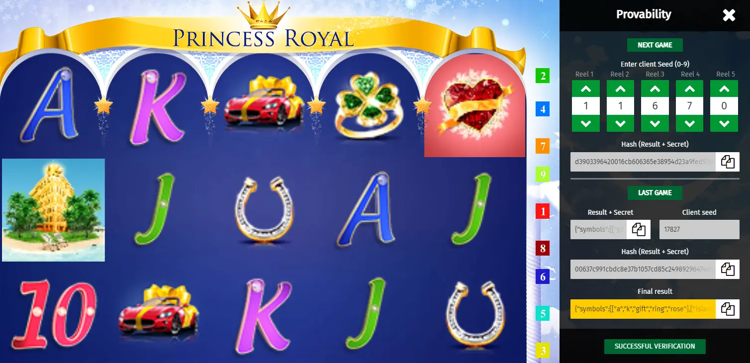 A player receives an encrypted hash of a server seed before a game starts. As far as he gets a hash in advance, a casino can’t change it in any way. At the same time, a player can’t influence or calculate the result too because the hash is encrypted. He receives unhashed code only after the end of a game round.